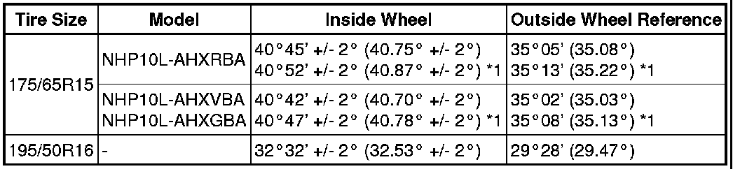 SPECIFICATIONS: ALIGNMENT / HANDLING DIAGNOSIS: SERVICE DATA