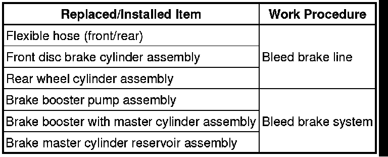 * When bleeding air, select the suitable work procedure according to the table below.