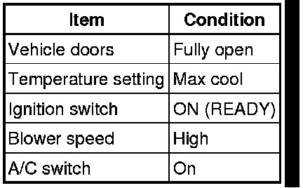(1) Prepare the vehicle according to the chart below.