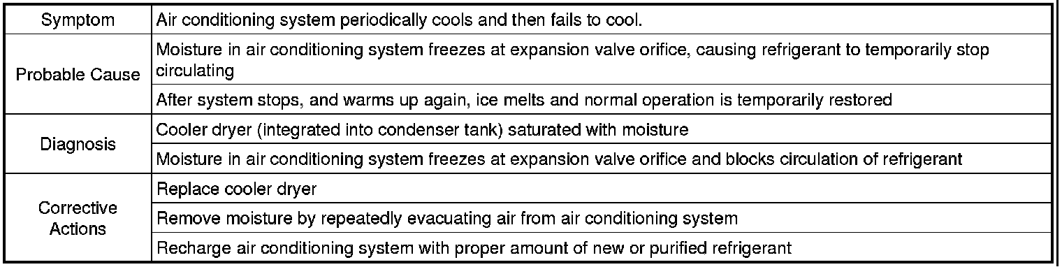 For the example above, moisture is present in the air conditioning system.