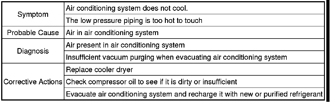 For the example above, air is present in the air conditioning system.