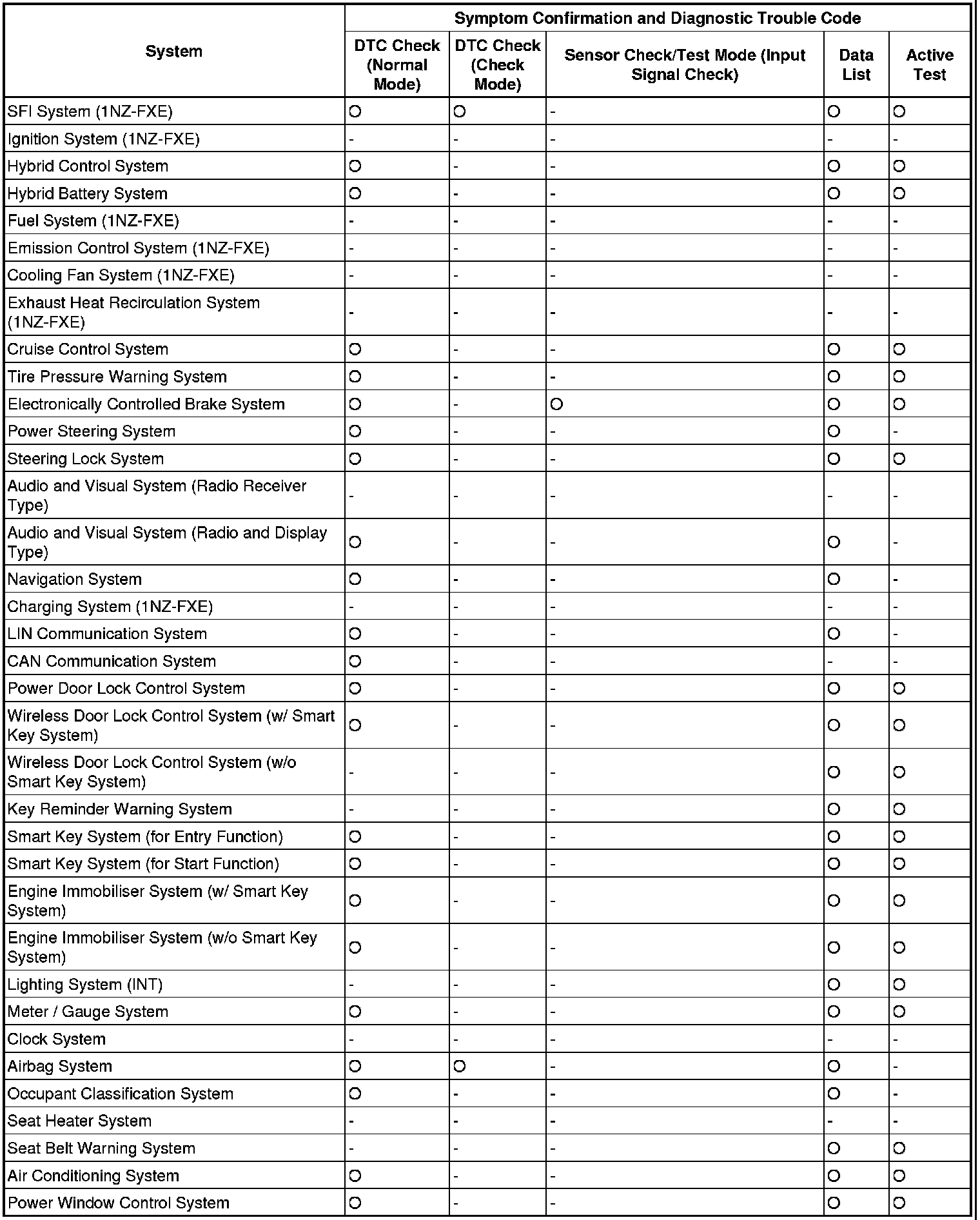 By using these functions, the problem areas can be narrowed down and troubleshooting can be more effective. Diagnostic functions are incorporated in the following systems of this vehicle.