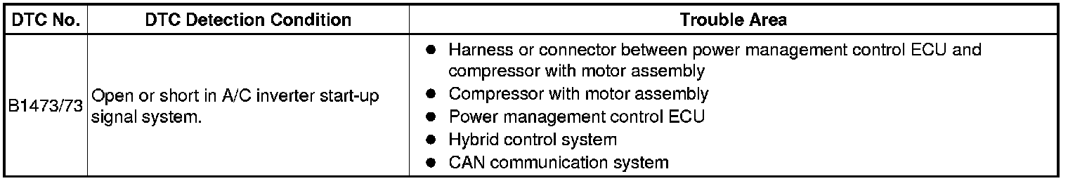 HEATING / AIR CONDITIONING: AIR CONDITIONING SYSTEM: B1473/73: A/C Inverter Start-up Signal System Malfunction