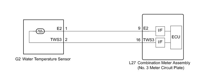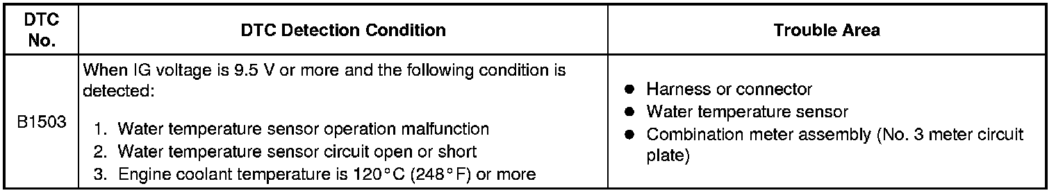 This DTC is stored when the combination meter assembly (No. 3 meter circuit plate) detects a malfunction in the water temperature sensor that is connected to the combination meter assembly (No. 3 meter circuit plate) via a direct line.