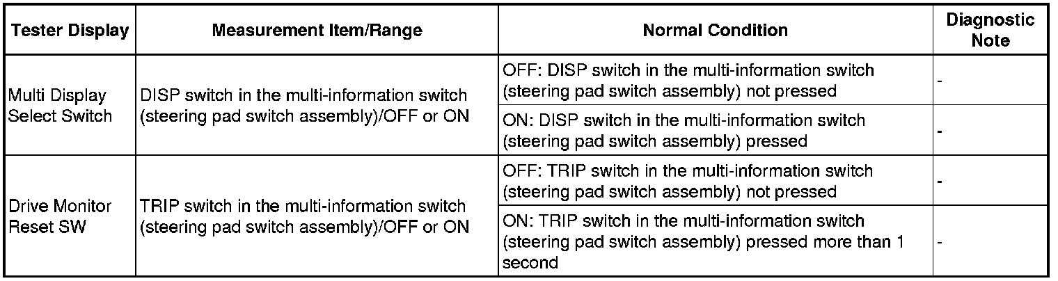 Before starting the following inspection, confirm the multi-information switch (steering pad switch assembly) setting.