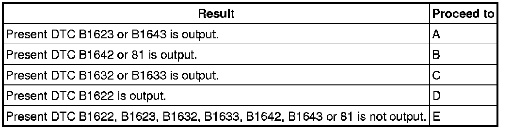 * Codes other than DTCs B1622, B1623, B1632, B1633, B1642, B1643 and 81 may be output at this time, but they are not related to this check.