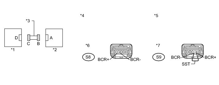 (a) Using SST, connect terminals 2 (BCR+) and 1 (BCR-) of connector C.