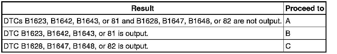 Codes other than DTCs B1623, B1642, B1643 or 81 and B1628, B1647, B1648 or 82 may be output at this time, but they are not related to this check.