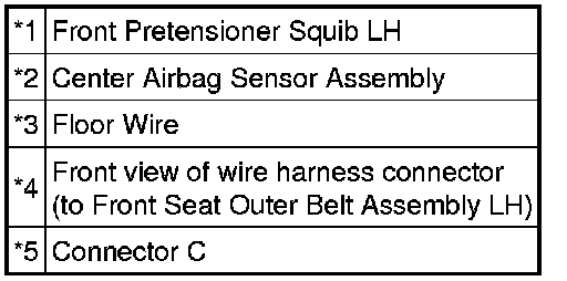 The front pretensioner squib LH circuit consists of the center airbag sensor assembly and front seat outer belt assembly LH.