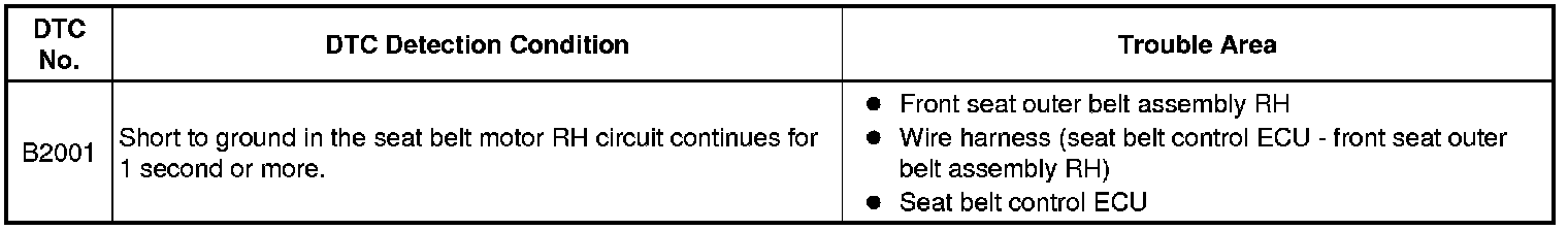 B2001 - Short to GND in Seat Belt Motor RH Circuit