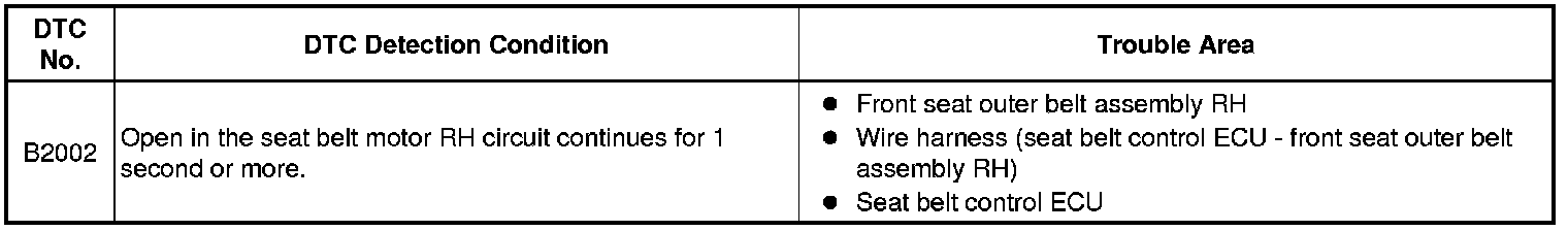 B2002 - Open in Seat Belt Motor RH Circuit