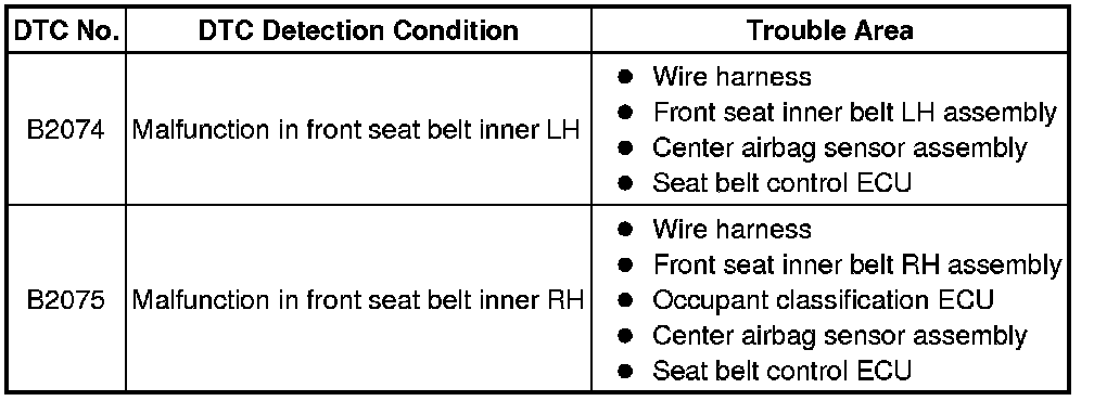 PRE-COLLISION: PRE-COLLISION SYSTEM: B2074, B2075: Driver Side Seat Belt Buckle Switch Circuit Malfunction