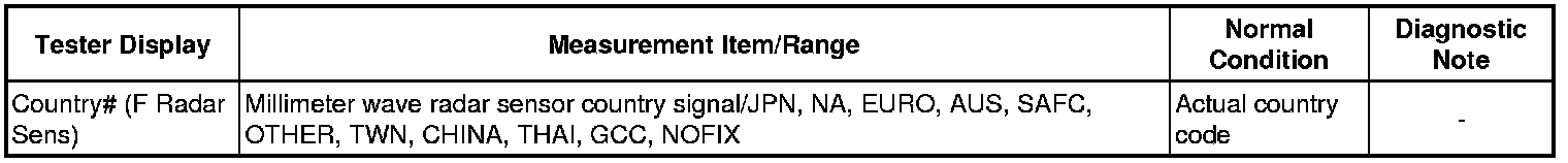 (e) Read the Data List and check the country specification information of the front millimeter wave radar sensor and vehicle.