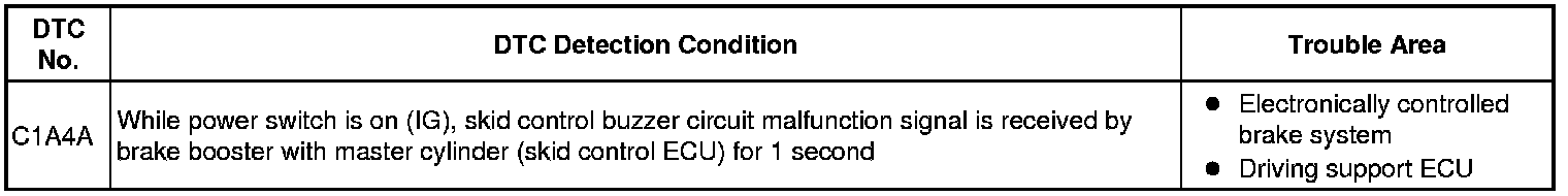 The driving support ECU sends a sounding signal to the brake booster with master cylinder (skid control ECU) to sound the skid control buzzer.