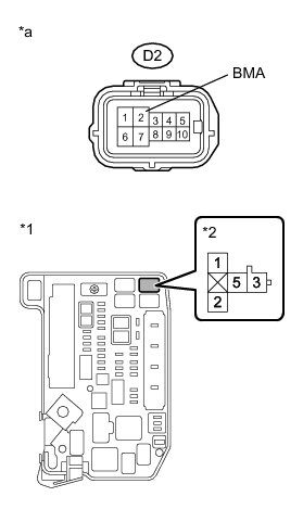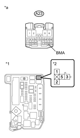 * If DTCs C2304, 2305 and 2306 are stored at the same time, there may be a malfunction in the parking lock motor (BMA signal) power source circuit.
