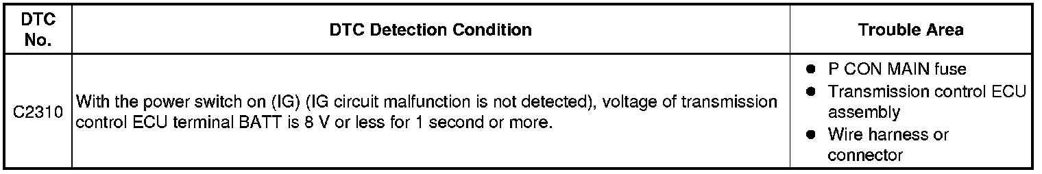 P410 HYBRID TRANSMISSION / TRANSAXLE: ELECTRONIC SHIFT LEVER SYSTEM: C2310: Open or Short Circuit in Battery Circuit