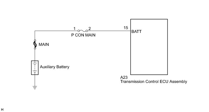NG -- CHECK HARNESS AND CONNECTOR (TRANSMISSION CONTROL ECU ASSEMBLY - P CON MAIN FUSE)