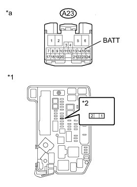 Auxiliary battery voltage is constantly applied to terminal BATT. This voltage is used to power the transmission control ECU memory. The transmission control ECU stores this DTC when it detects a malfunction related to terminal BATT.