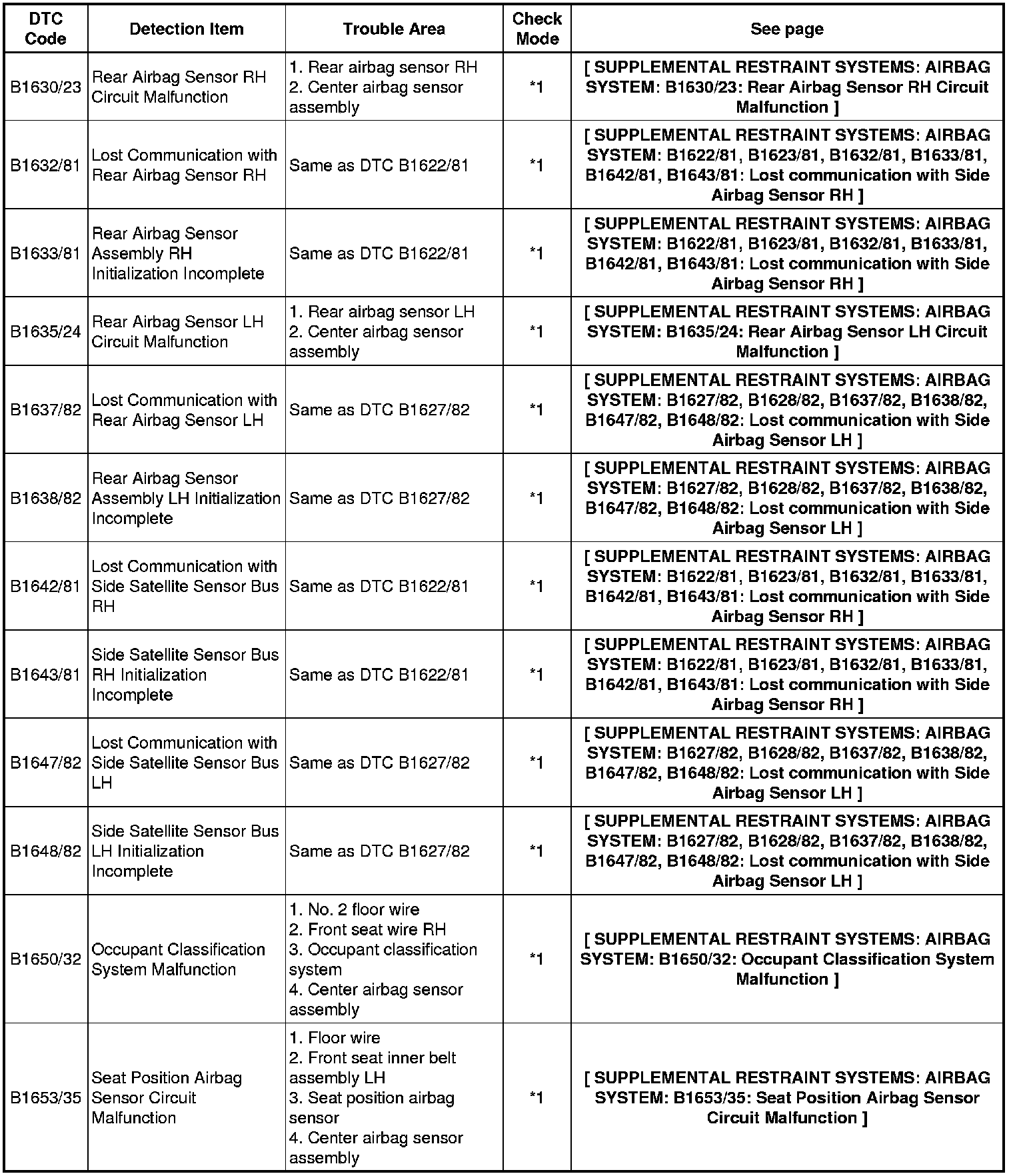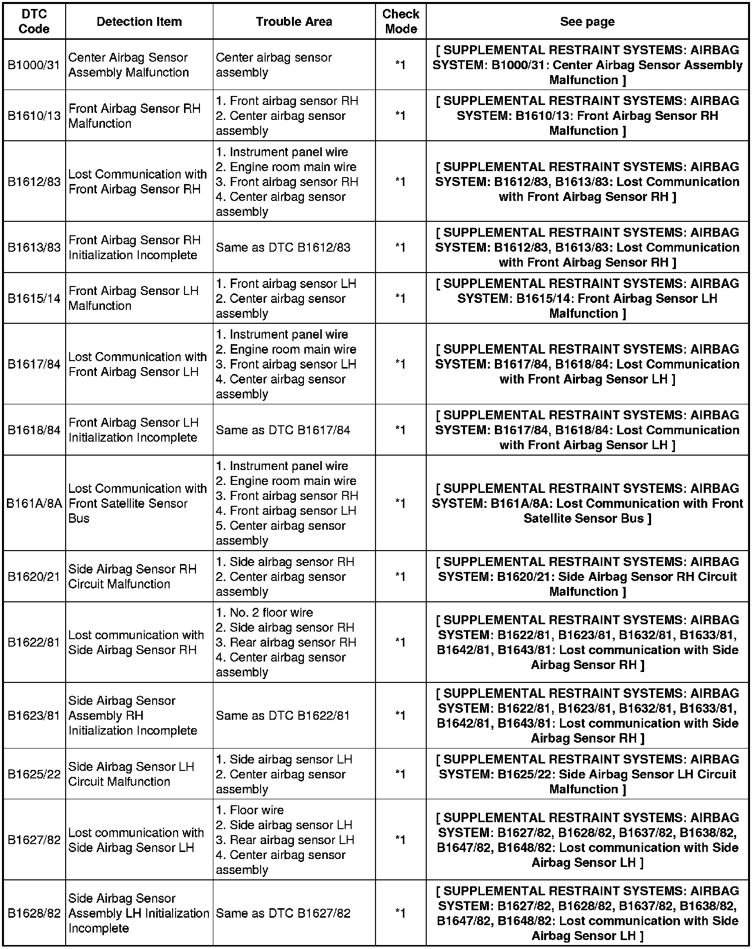 * If a code is not listed on the display chart, the center airbag sensor assembly may have failed.