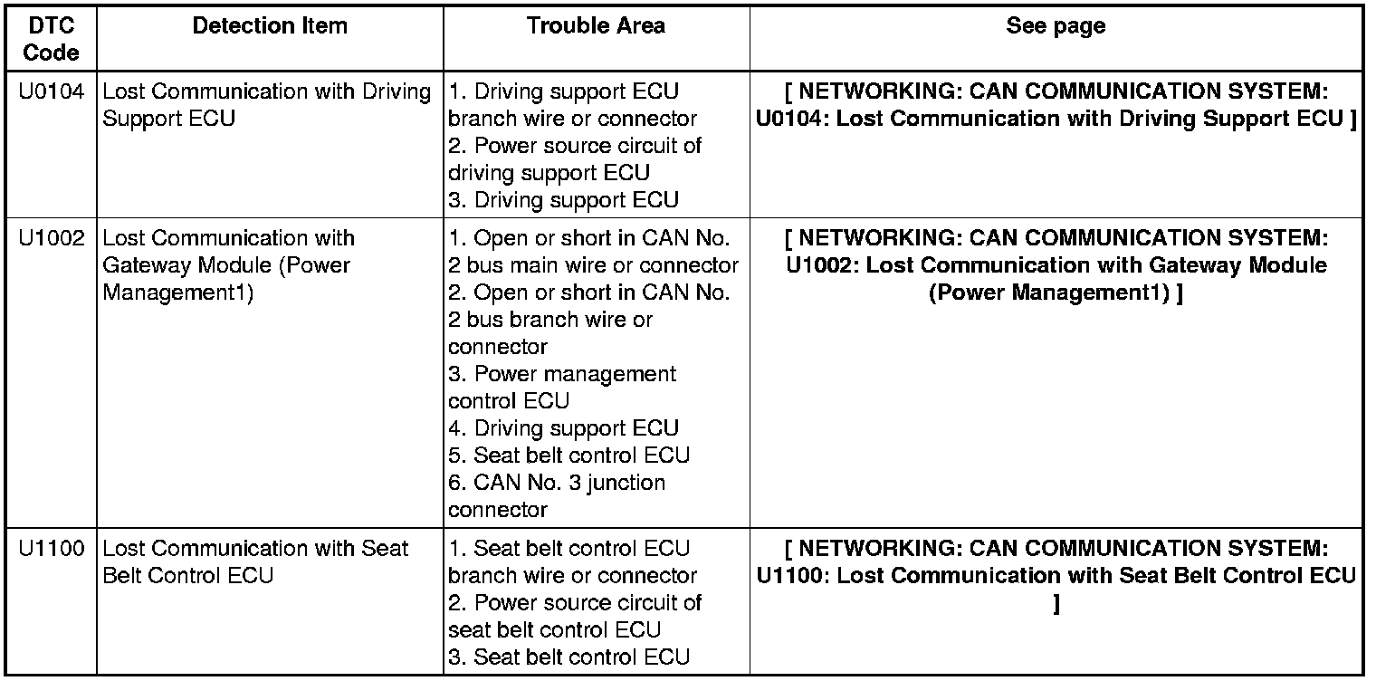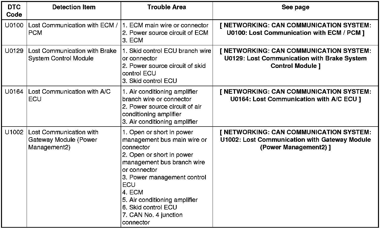 NETWORKING: CAN COMMUNICATION SYSTEM: DIAGNOSTIC TROUBLE CODE CHART