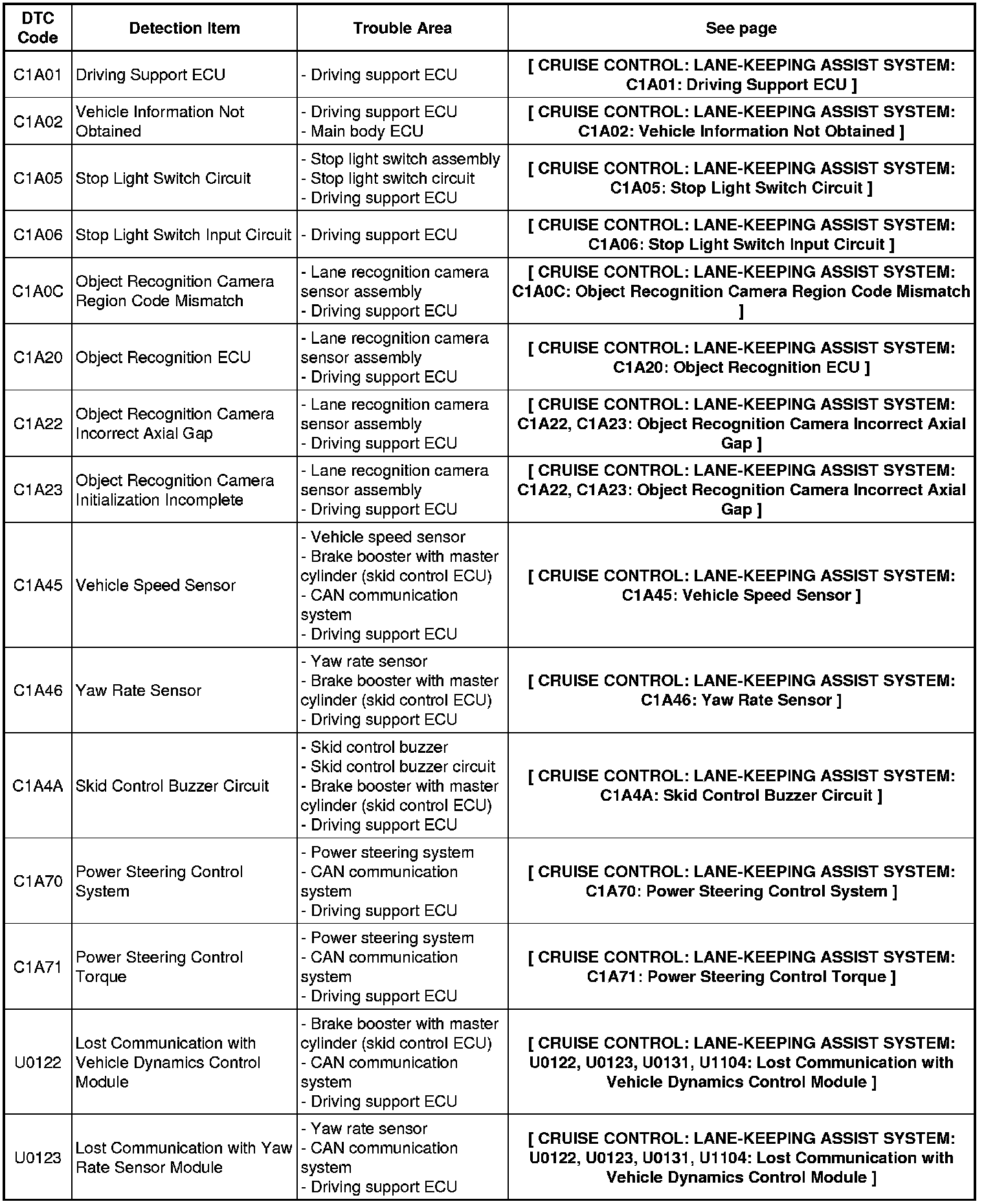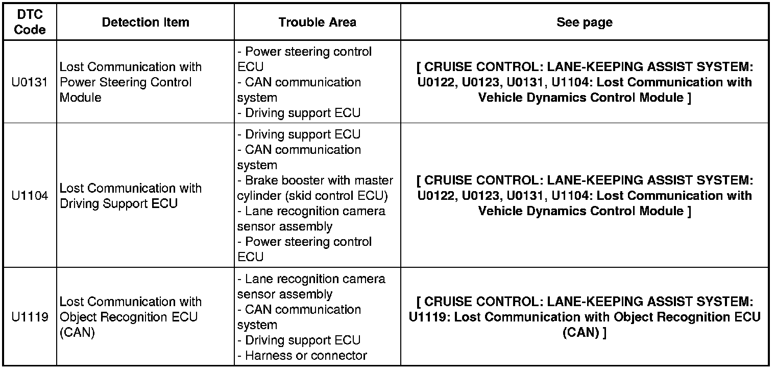 CRUISE CONTROL: LANE-KEEPING ASSIST SYSTEM: DIAGNOSTIC TROUBLE CODE CHART