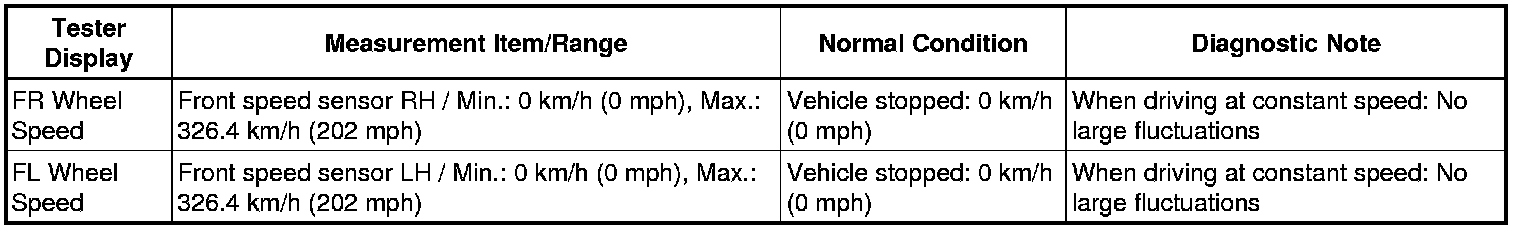 2. READ VALUE USING TECHSTREAM (FRONT SPEED SENSOR)