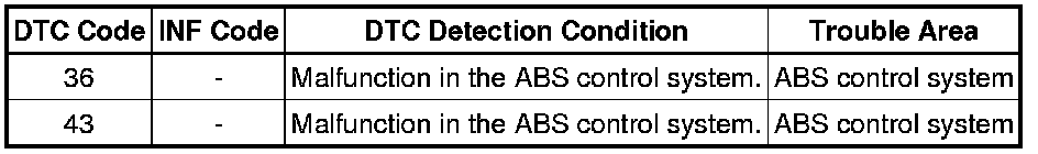 These DTCs are stored if the VSC and/or electronically controlled brake system detects a malfunction in the ABS control system.