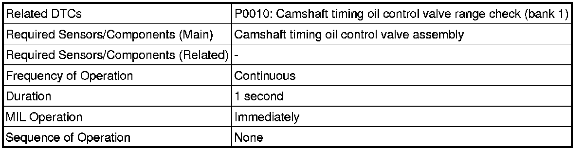 2ZR-FXE ENGINE CONTROL: SFI SYSTEM: P0010: Camshaft Position "A" Actuator Circuit (Bank 1)