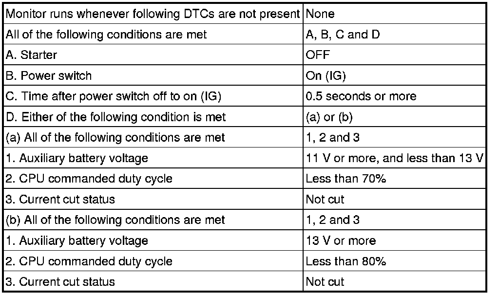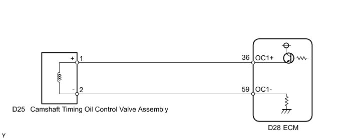 This DTC is designed to detect open or short circuits in the camshaft timing oil control valve assembly circuit. If the camshaft timing oil control valve's duty-cycle is excessively high or low while the power switch is on (IG) or engine is running, the ECM will illuminate the MIL and store the DTC.