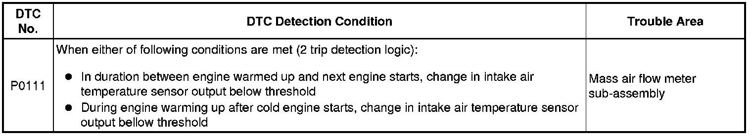 2ZR-FXE ENGINE CONTROL: SFI SYSTEM: P0111: Intake Air Temperature Sensor Gradient Too High