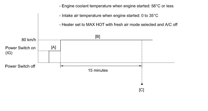 8. Start the engine and drive the vehicle at 80 km/h (50 mph) for 15 minutes [B].