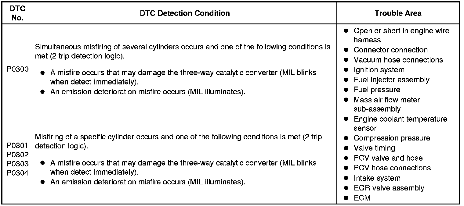 2ZR-FXE ENGINE CONTROL: SFI SYSTEM: P0300-P0304: Random / Multiple Cylinder Misfire Detected