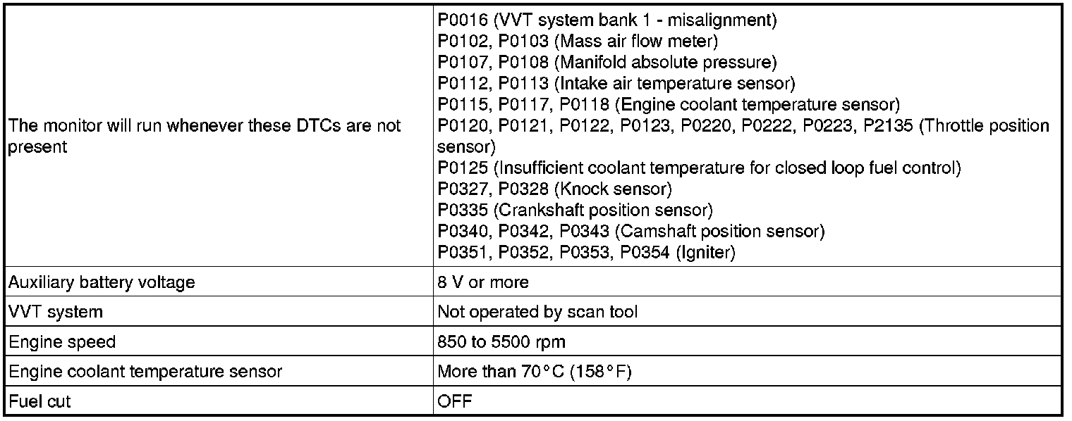 * If the freeze frame data record of the engine coolant temperature is below 75°C (167°F), it may only be possible to detect the misfire when the engine is cold.