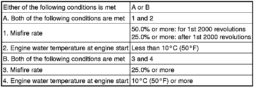 - Within the first 1000 crankshaft revolutions after the engine starts, an excessive number of misfires (approximately 20 to 50 misfires per 1000 crankshaft revolutions) occurs once.