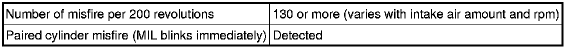 - At a normal engine speed, a sufficient amount of misfires to damage the catalyst occurring within 200 crankshaft revolutions is detected 3 times.