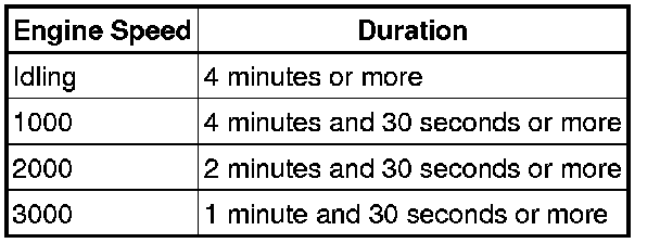 In order to store misfire DTCs, it is necessary to operate the vehicle for the period of time shown in the table below, using the Misfire RPM and Misfire Load in the Data List.