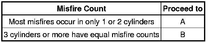(h) Read each value for Cylinder #1 (to #4) Misfire Count displayed on the Techstream. If no misfire counts occur in any cylinders, perform steps [A] and [B], and then check the misfire counts again.
