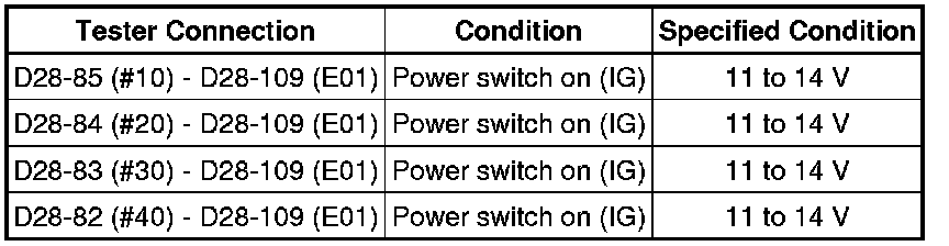 27. CHECK TERMINAL VOLTAGE (POWER SOURCE OF FUEL INJECTOR ASSEMBLY)