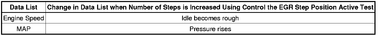 * When the engine is idling steadily with the EGR valve fully closed, if the EGR valve is normal and it is opened using the Active Test, the Data List value changes as follows.