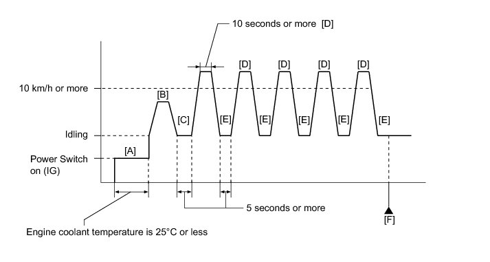 11. Accelerate the vehicle to 10 km/h (6.25 mph) or more for 10 seconds or more [D].