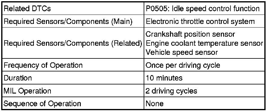 * The following conditions may also cause DTC P0505 to be set: