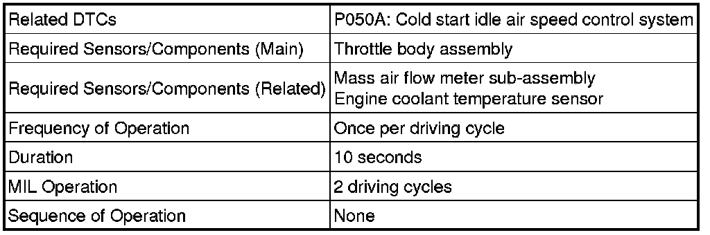 2ZR-FXE ENGINE CONTROL: SFI SYSTEM: P050A: Cold Start Idle Air Control System Performance