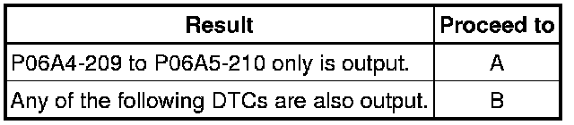 P06A4-209 or P06A5-210 may be set due to a malfunction which also causes DTCs in the preceding table to be set. In this case, first troubleshoot the output DTCs in the preceding table. Then, perform a test to attempt to reproduce the problems, and check that no DTCs are output.