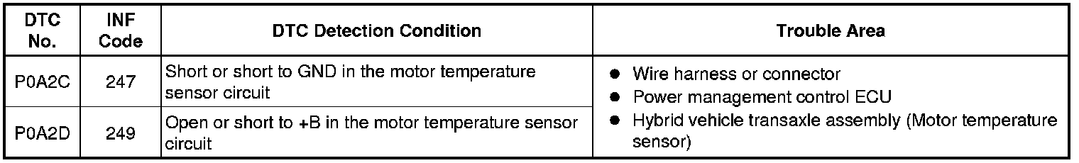 HYBRID / BATTERY CONTROL: HYBRID CONTROL SYSTEM: P0A2C-247, P0A2D-249: Drive Motor "A" Temperature Sensor Circuit Low