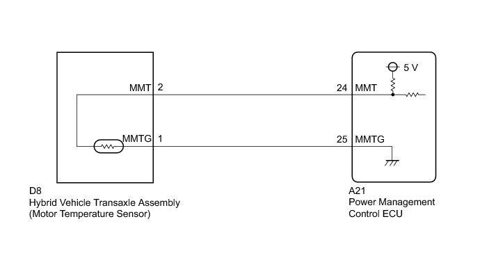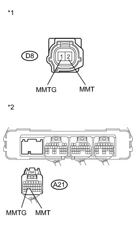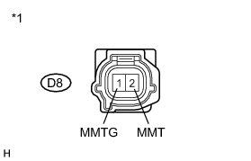 (b) Connect terminals 2 (MMT) and 1 (MMTG) of vehicle side connector D8 of the motor temperature sensor.