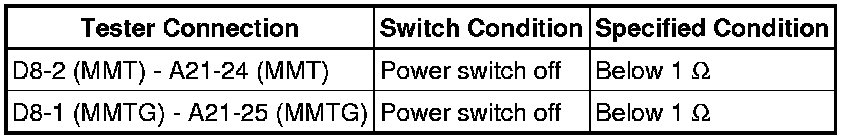 (a) Connect terminals 24 (MMT) and 25 (MMTG) of connector A21 of the power management control ECU.