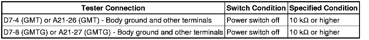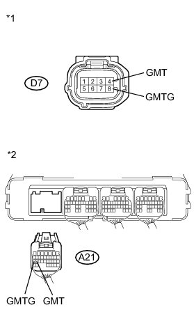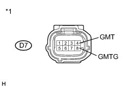 (b) Connect terminals 4 (GMT) and 8 (GMTG) of vehicle side connector D7 of the generator temperature sensor.