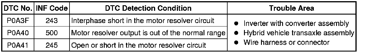 HYBRID / BATTERY CONTROL: HYBRID CONTROL SYSTEM: P0A3F-243, P0A40-500, P0A41-245: Drive Motor "A" Position Sensor Circuit
