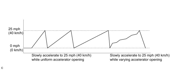 6. Slowly accelerate from a stop (0 mph (0 km/h)) to 25 mph (40 km/h) several times while using different acceleration patterns.