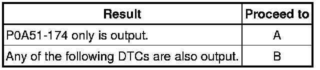 - P0A51-174 may be output due to a malfunction which causes the DTCs in the table above to be output. In this case, first troubleshoot the output DTCs in the table above. Then, perform a reproduction test to check that no DTCs are output.
